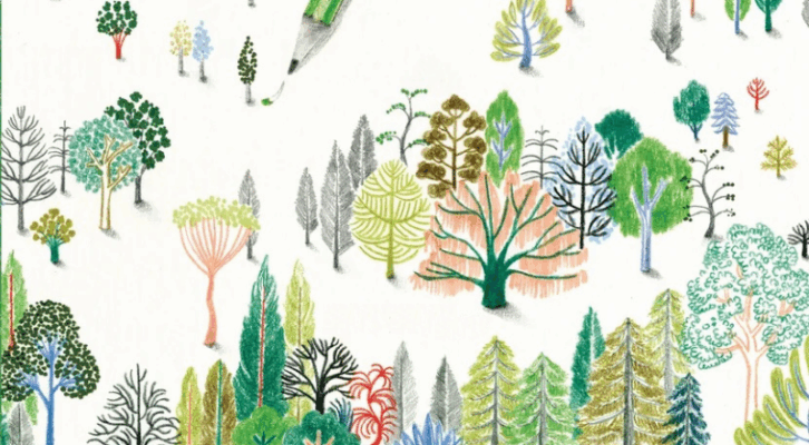 In colorful, whimsical sketches, this wordless picture book traces the life cycle of the humble pencil, from forest to factory to the hands of an artistic young child. I’m particularly drawn to Hye-Eun Kim’s illustration style and to the ideas the images spark for me: that a pencil is a paradox, a physical tool that consumes natural resources and a creative tool that can help new things grow. But there’s lots of white space here where young imaginations can roam free, and I look forward to watching my kids make their own meaning as they turn the pages. Hand Pencil to readers of any age who are eager to dream, create, wonder, and play.