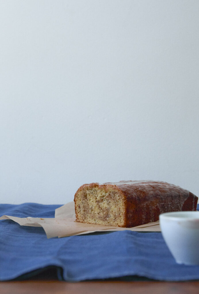 A fragrant banana bread is nostalgic: a sweet combination of brown sugar, fruit past its prime, and warming spices. This recipe uses a classic marble cake technique to swirl rich layers of cinnamon into a fluffy olive oil-scented loaf cake. It’s topped with a malted milk glaze for a punch of umami, but you can skip it entirely or substitute a simple vanilla glaze.
