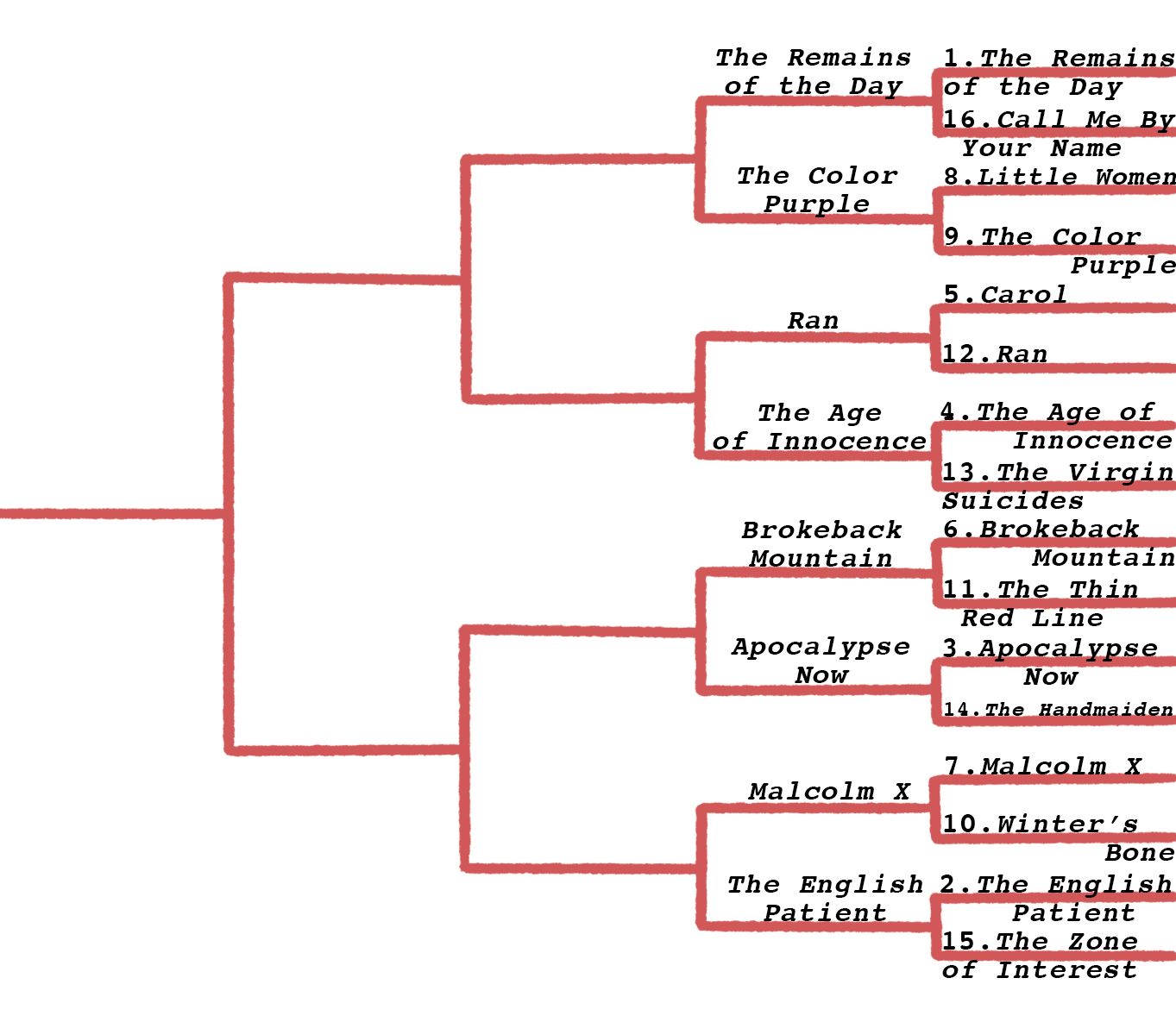 The Remains of the Day (1) vs. The Color Purple (9)