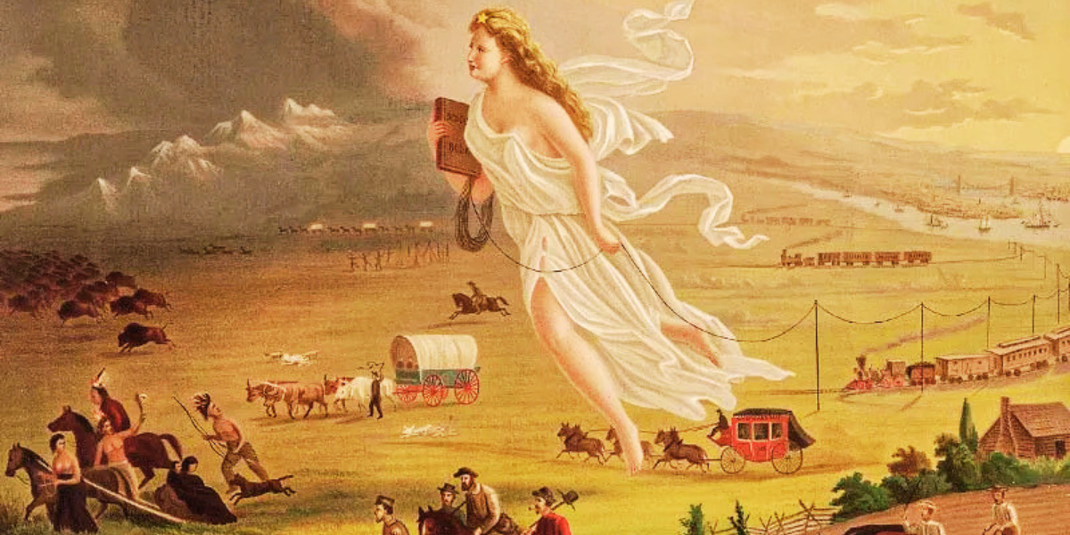 At the same time, more and more Americans embraced Manifest Destiny, the idea that continental conquest was inevitable and that the lands stretching from the Atlantic Ocean to the Pacific (and possibly beyond) were American by divine right. Rugged, determined white men with wives and children in tow made their way west, staking their claims and living independent lives without any help from the federal government. With grit and determination, they built houses and tilled farms and built their fortunes alongside other pioneers, who were, like them, white Americans. This preordained process became the core of the American Dream, as white families envisioned themselves pursuing life, liberty, and happiness in the American West.