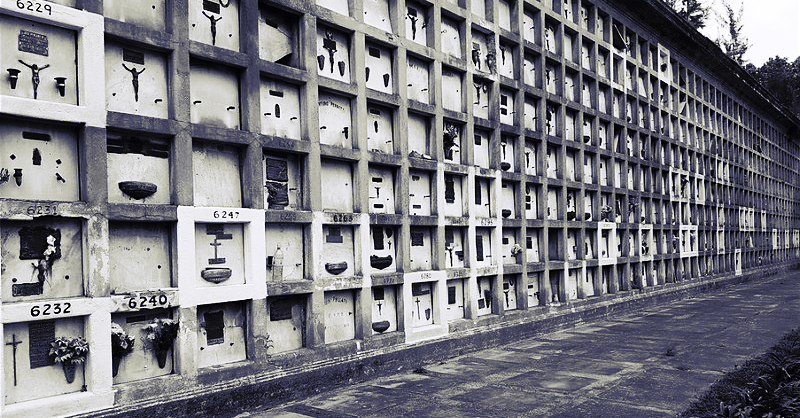 There are also plaques with birth and death dates, which were once on graves and were later relocated here. They don’t match the photos. It’s a mixture: a waist-up photo of a smiling little girl with neat bangs and narrowed eyes, beside a photo of a woman with an impressive nose, wearing a mantilla, and beneath them, a plaque that says, “Oscar Alfredo Velazques.”