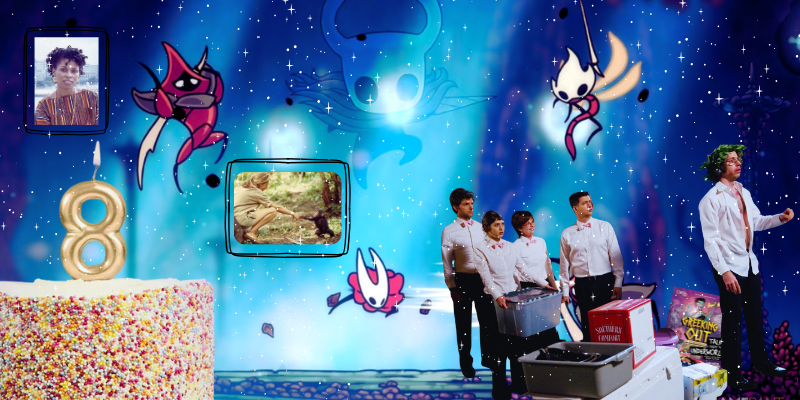 After receiving his first “ever-ever” gaming console (a Switch), Drew Broussard has become “fully obsessed” with Hollow Knight. The 2D action-adventure game draws readers into a labyrinthine Gothic mystery, set far “beneath the fading town of Dirtmouth.”