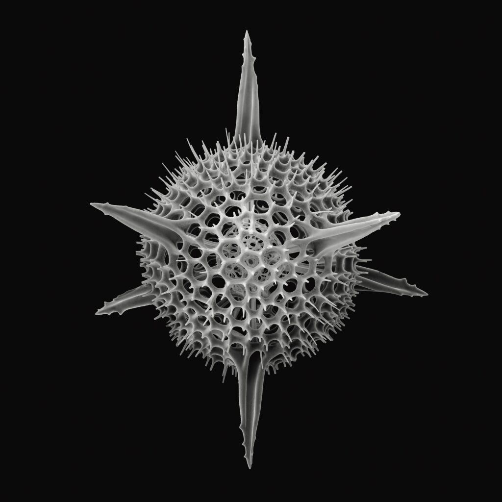 No creatures from the microscopic world have managed to captivate the human imagination as authoritatively as radiolarians. Since the late nineteenth century, they’ve made their existence known in art, architecture, design, and even literature. These single-celled marine organisms, which appear to have teleported straight from some rarified Euclidean space into all the world’s oceans, seamlessly fuse geometry and biology. Their astonishingly complex glassine skeletons may serve to protect and regulate buoyancy for the cell inside, but they also seem a kind of physical embodiment in sculpted glass of what radiance means.