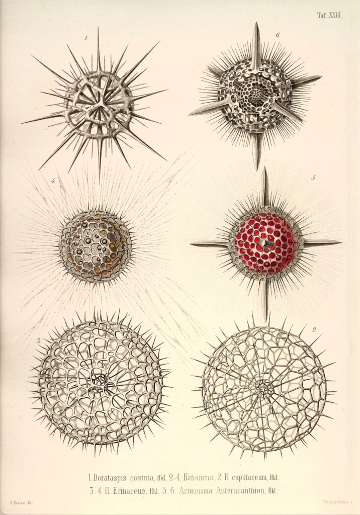 Ernst Haeckel and Adolf Giltsch, Radiolarians, 1887, lithograph.
