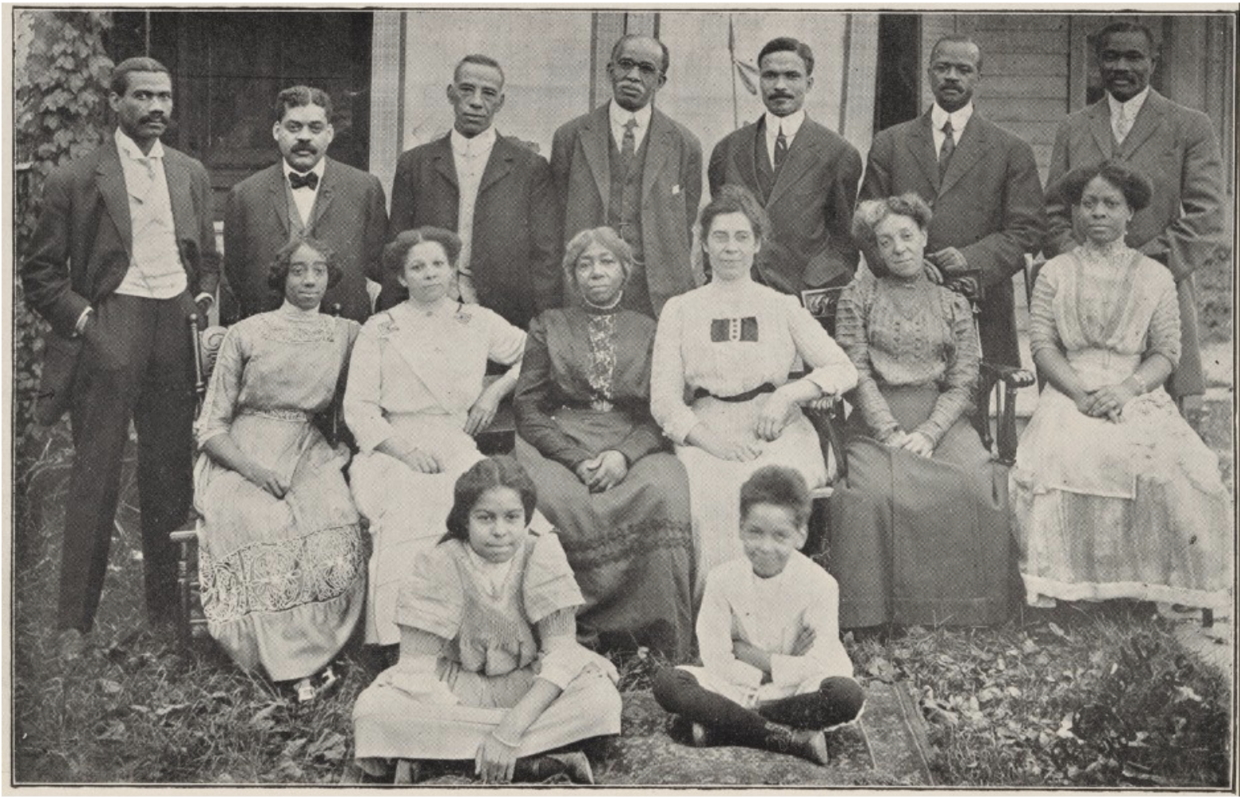 Those who gathered in this space represent the diasporic networks of self-taught thinkers who shaped Black ideas in the years before the Renaissance. John Edward Bruce, born in Maryland and a survivor of slavery, was the eldest of the group and the galvanizing force behind the Negro Society for Historical Research. He and Schomburg were joined by co-founders William Wesley Weeks, a musician from British Guiana; the visual artist William Ernest Braxton; and David B. Fulton, a journalist who chronicled the infamous white supremacist insurrection that ushered in decades of Jim Crow rule in Wilmington, North Carolina. Josephine Holmes, a teacher involved with the Harriet Tubman Club, and Mary E. Butler, a dressmaker, joined the Society and hosted its first lawn party in 1911, where the only known portrait of the group was likely taken.