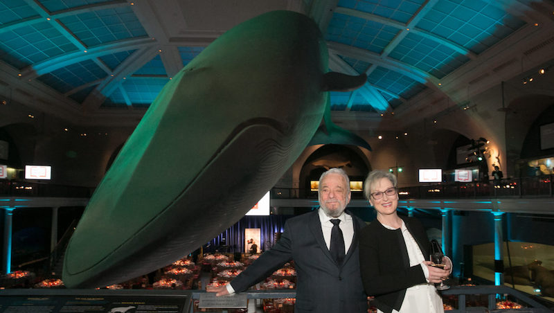 Dinner takes place under the big whale, with dozens of mini-tables set up and hosted by literary luminaries like Rita Dove, Masha Gessen, and Salman Rushdie. When Meryl Streep presented the 2017 PEN/Allen Foundation Literary Service Award to Sondheim, she told a story about when she once went to his house and asked him to sign her sheet music for the song he’d written her. When she got into her cab, she finally peeked at the message: Don’t fuck it up.