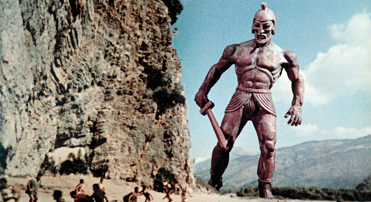 When faced with an opponent Talos was known to engulf himself in fire and embrace his enemies to ash, laughing the whole while. The poet Simonides traces the phrase “sardonic laughter” to Talos’s sinister habit during a run-in with Sardinian pirates. Just as later automata came to be associated with the pinnacle of scientific achievement, Talos incarnates metalworking, the era’s technological height. Probably the most indelible image we have of Talos is that of Ray Harryhausen’s stop motion giant in the 1963 film version. While the Argonautica mentions Talos as approximately eight-feet tall, the movie portrays him, with mysterious fluctuations throughout his scenes, as taller than Crete’s mountains. Talos has some affinities with the Golem of Jewish mysticism; instead of being cast out of metal, though, the latter was animated by a certain dance and chanting.