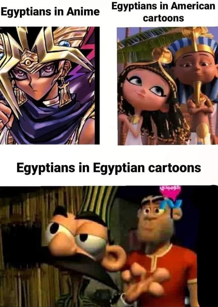 With Egyptian comics art, it is primarily influenced by our own history of having comics created by political cartoonists, who tended towards humor and exaggerated features in the characters. It is visually closest to the Franco-Belgian style, but is a little less “beautiful” and a lot more satirical. What I really wanted was to answer the question of why you could intuit that a comic was drawn by an Egyptian artist simply by looking at it. It’s a little bit like this meme, which sums it up: