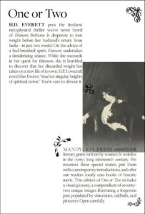 One book I loved from Mandylion that I’ve been consistently talking up to folks is One or Two, a strange speculative novel from 1907 that feels like a Twilight Zone premise glimpsed through a Victorian dream.
