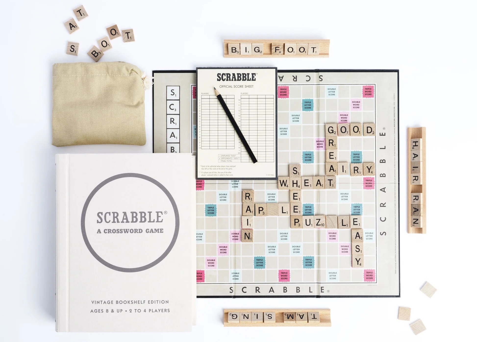 Word dorks love Scrabble. This edition packs into a little book-shaped-box that fits on your shelf, which is cute.