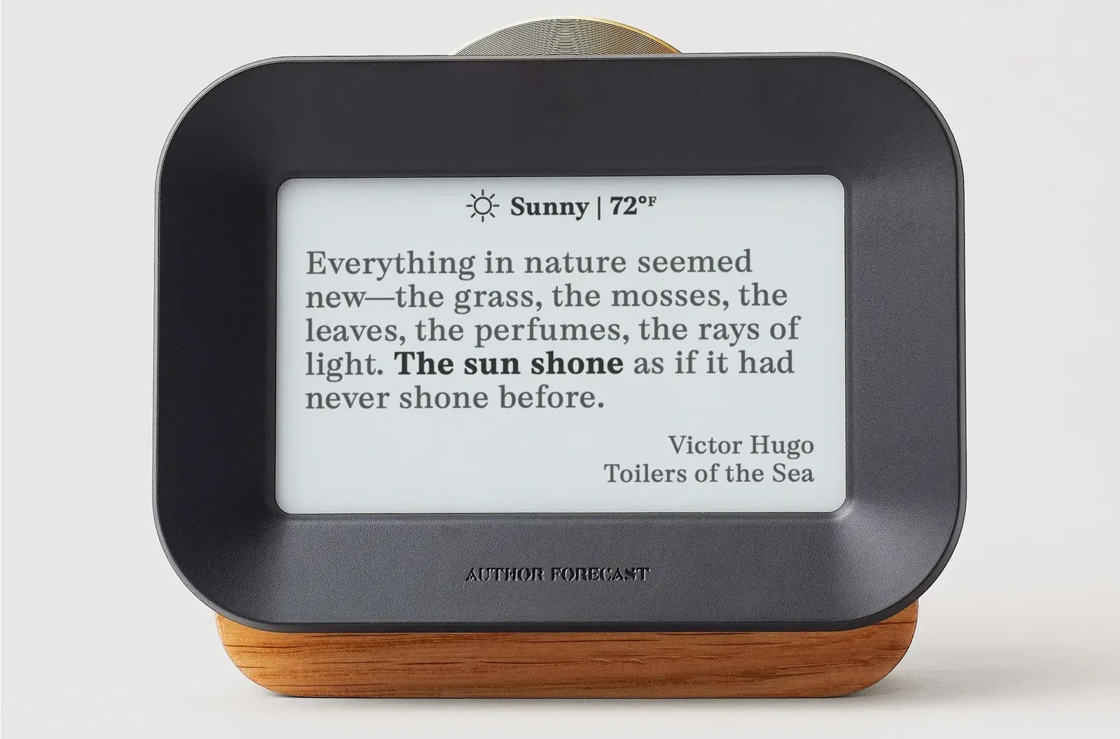 Everyone always puts the Author Clock on lists of gifts for people who like books, and fair enough. But now they have one that tells the weather through literary quotes, which is even more ridiculous and impractical, and even more likely to add books to your favorite writer’s reading list.