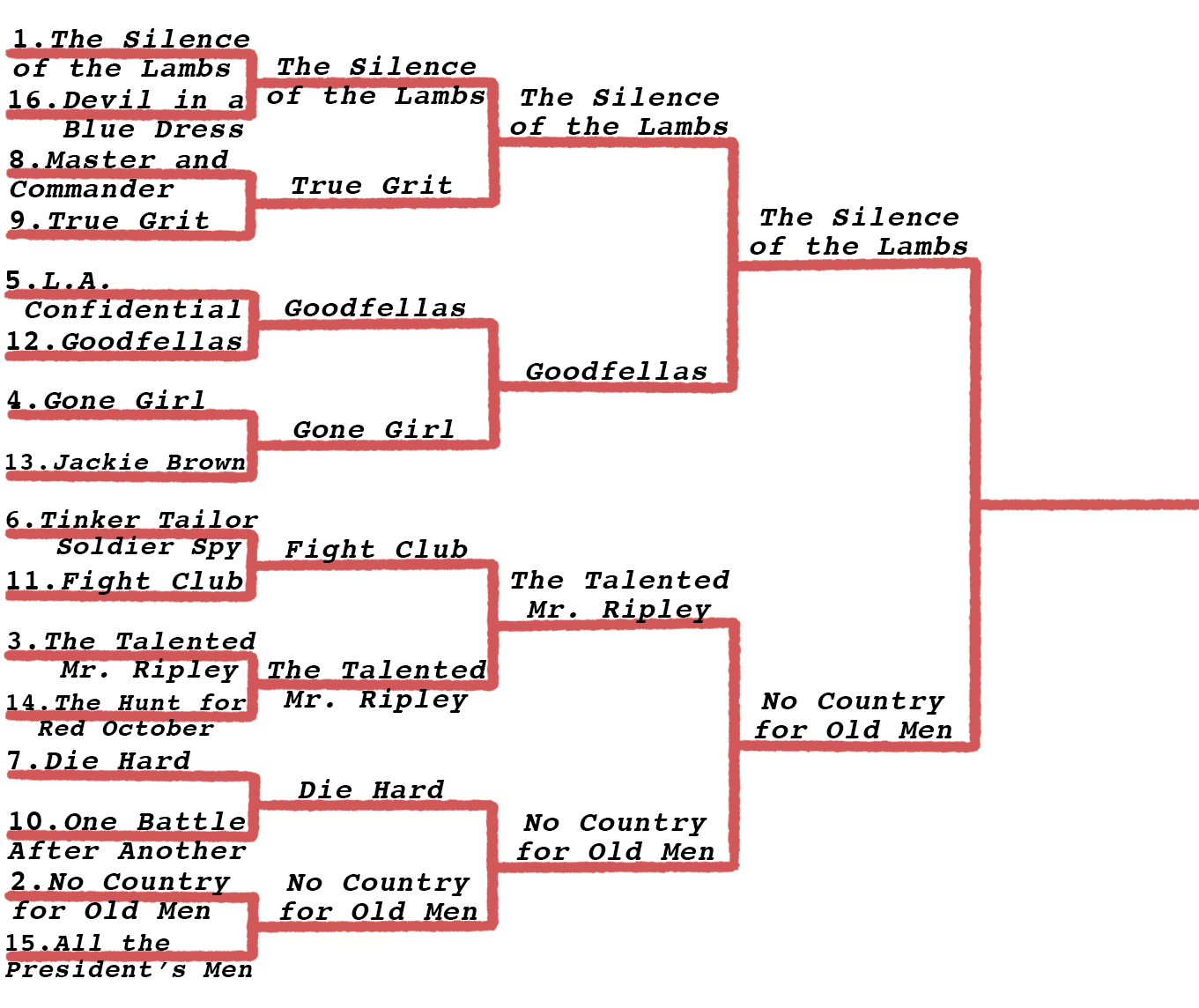 The Silence of the Lambs (1) vs. No Country for Old Men (2)