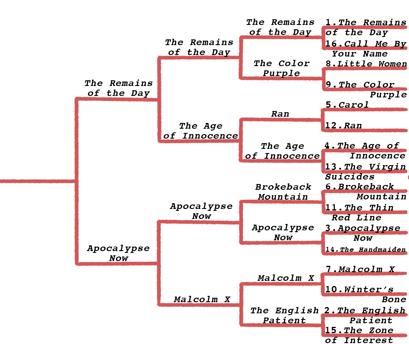 The Remains of the Day (1) vs. Apocalypse Now (3)