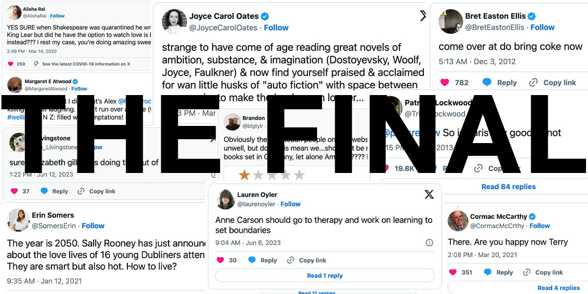 Now that Literary Twitter is dead, we’re asking, “What was it?” In this bracket, we’re seeking the Most Literary Twitter moment, discourse, or personage. What has been stuck in your mind, who sent you running to your group chat, what kept you scrolling for longer than you should have? What are you still bringing up in conversation today and having to explain to people with normal brains? In short, what most exemplified whatever the hell Literary Twitter was?