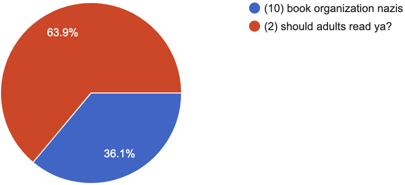 book organization nazis (10) vs. should adults read ya? (2)