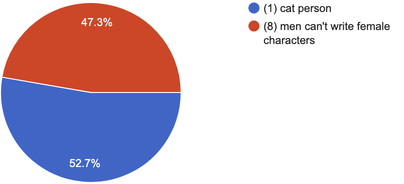 cat person (1) vs. men can’t write female characters (8)