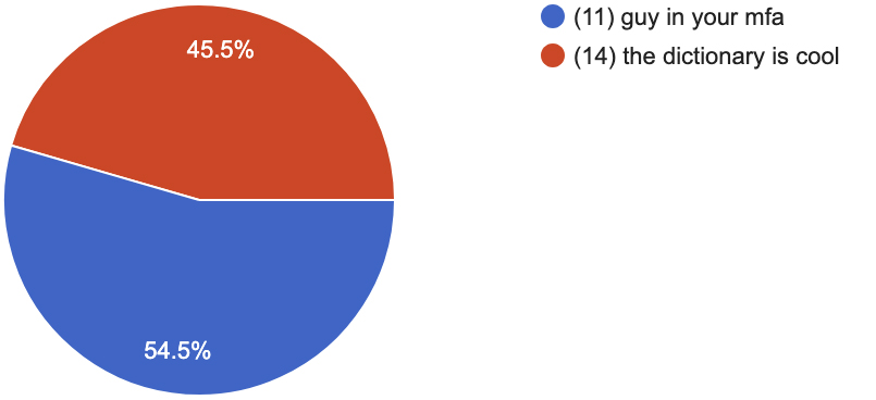 guy in your mfa (11) vs. the dictionary is cool (14)