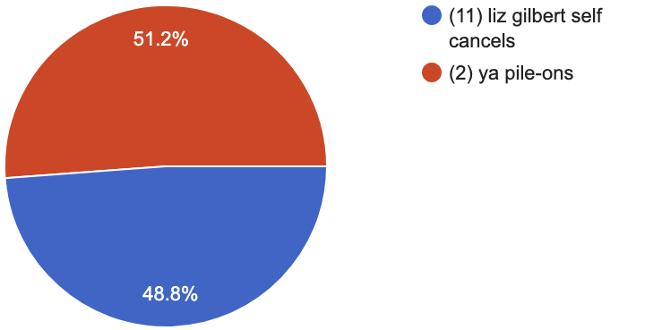 liz gilbert self cancels (11) vs. ya pile-ons (2)
