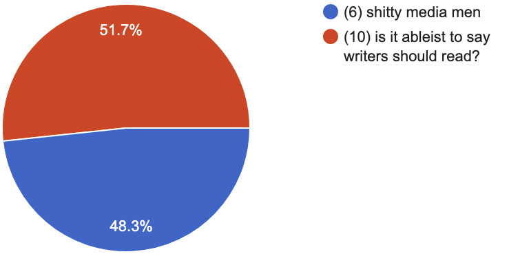 shitty media men (6) vs. is it ableist to say writers should read? (10)