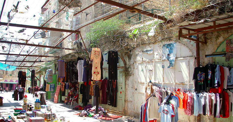 We go to shattered, buried Palestine in the old city of Hebron. We look up, and Israel lives above the wire mesh which catches its rocks, its garbage, although not its urine. Israel is in the upper floors of houses taken over and occupied by settler families, or turned into watchtowers for the soldiers who protect them. Palestine on the ground floor, on the street level, and Israel between the wire mesh and the sky.